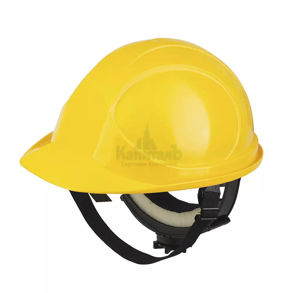 Защитная каска с текстильным оголовьем и плавным регулятором размера предназначена для защиты работников от падающих предметов и боковых ударов, а также для обеспечения дополнительной защиты от других механических воздействий, влаги и электрического тока напряжением до 440 В.
