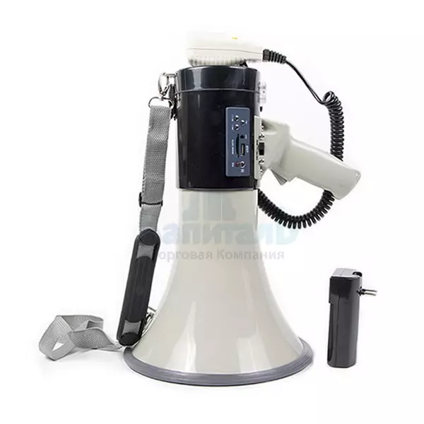 Примером ручного речевого устройства служит ручной мегафон, через который возможно доносить путем устной речи до большого количества людей соответствующую информацию.